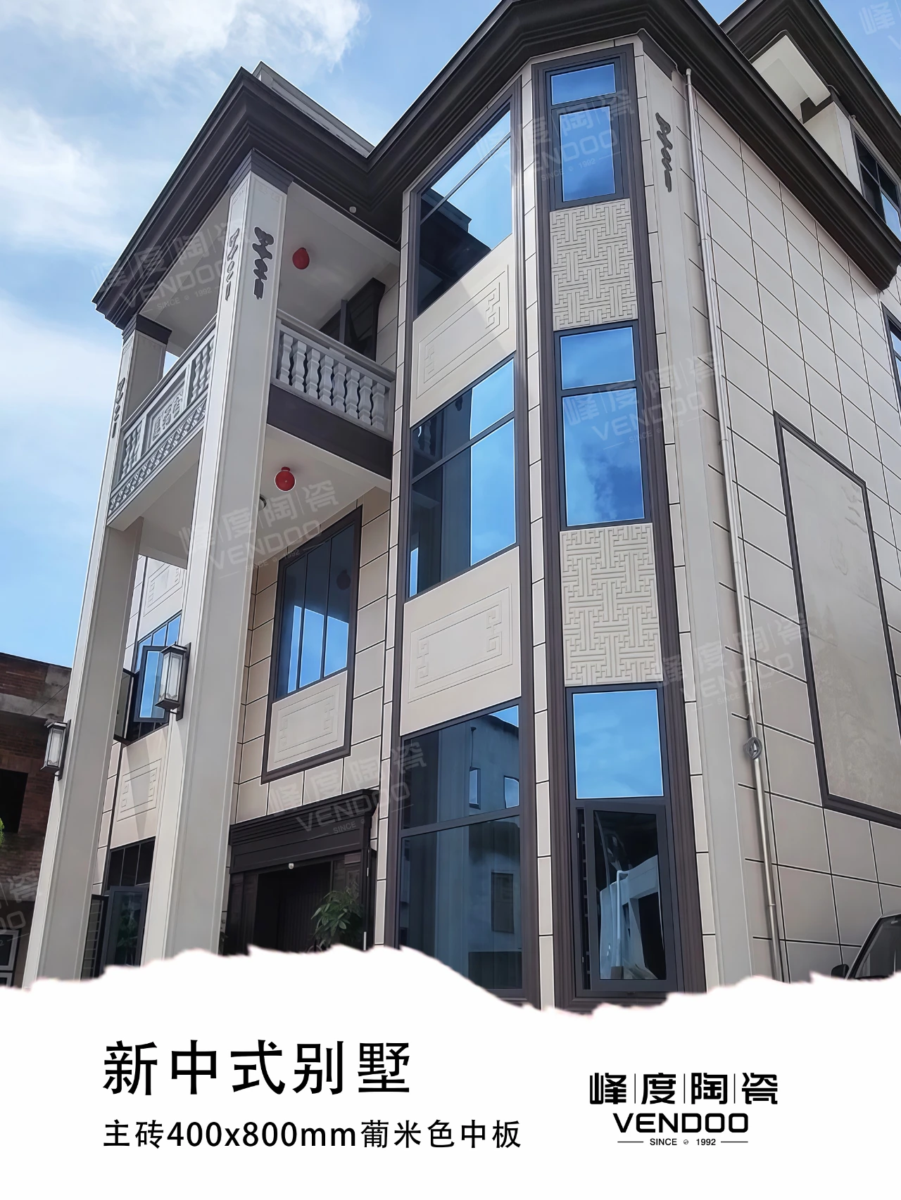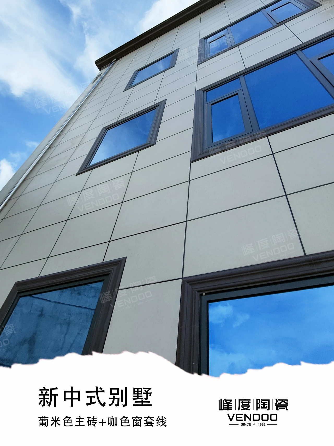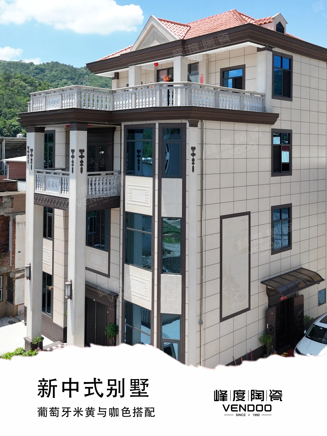 位于福建泉州诗山镇的独栋自建别墅,主砖选用了400x800mm葡米色中板,加上咖色配件点缀,丰富了外立面的层次感,整体搭配简洁明亮,没有太过华丽的颜色冲击。