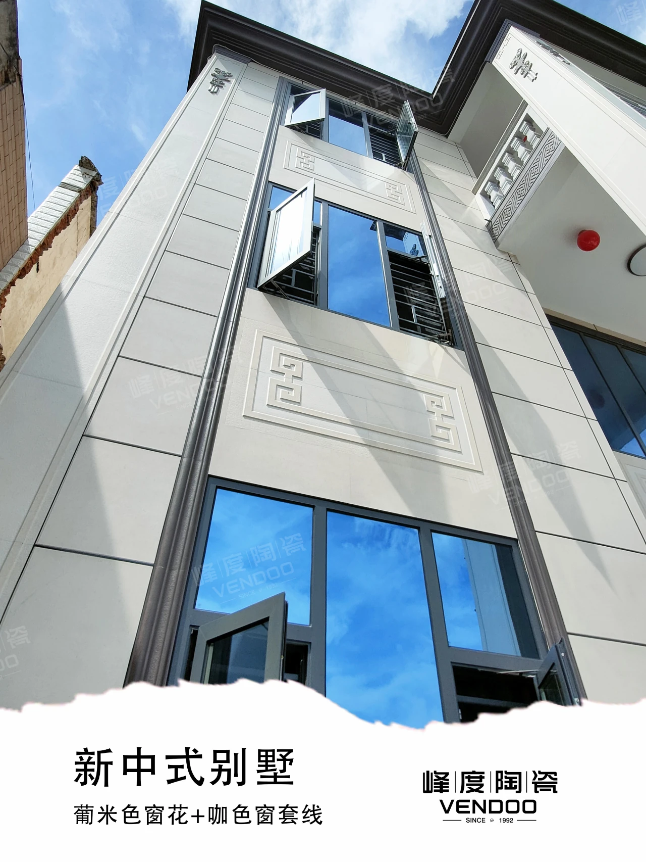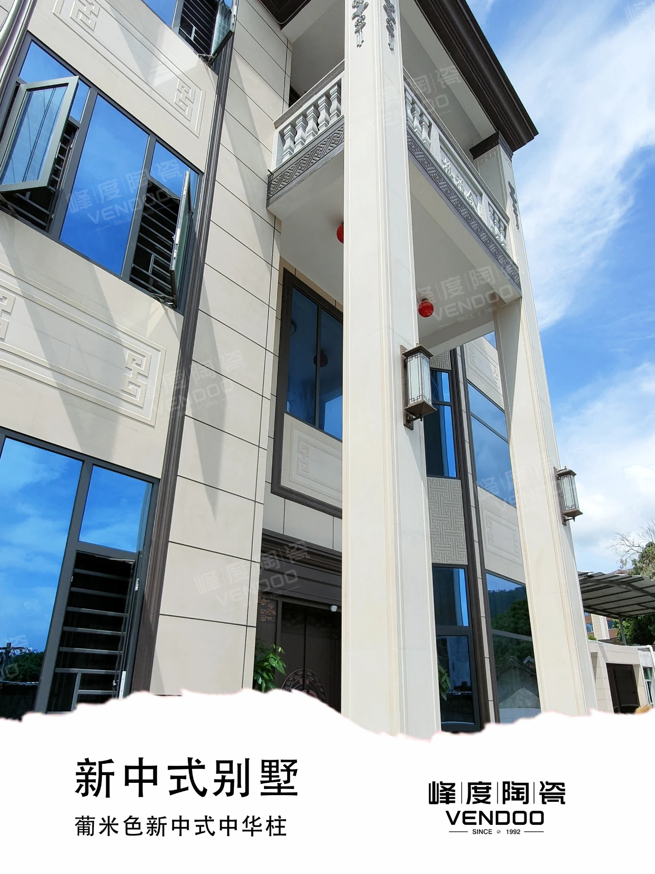 从柱墩、柱身、柱帽到窗花、窗套线,再到墙裙、壁画,一站式配套!想做新中式别墅,可以直接照搬此案例,不管是 3 层大宅的气派,还是小院别墅的精致,葡米色系列都能轻松拿捏。