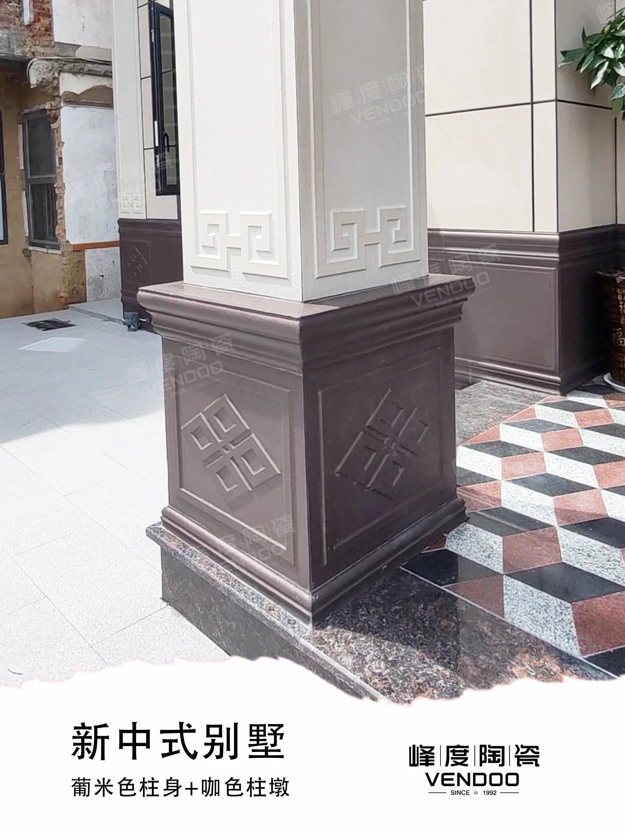从柱墩、柱身、柱帽到窗花、窗套线,再到墙裙、壁画,一站式配套!想做新中式别墅,可以直接照搬此案例,不管是 3 层大宅的气派,还是小院别墅的精致,葡米色系列都能轻松拿捏。